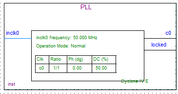由于实验板载FPGA提供50MHz晶振,通过Quartus自带的PLL模块,为了更快实现在LCD上显示所需内容,设置参数,产生50MHz的时钟,作为本次设计的系统时钟,如图1所示: